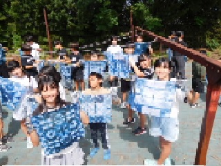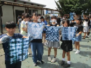 5年生が社会科見学に行ってきました。中島紺屋さんで藍染を体験し、グリコピアイーストで工場見学をしました。