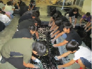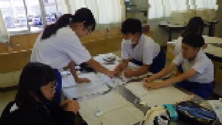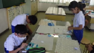 5年生が家庭科の授業でランチョンマットづくりをしています。保護者のボランティアの方にお手伝いただきました。ありがとうございました。
