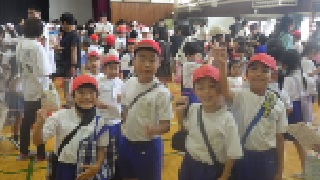 10月の全校朝会を行いました。校長先生からは「安全に過ごそう」ということについて、生徒指導からは今月の生活目標について話がありました。6年生の陸上記録会に向けて、5年生が応援グッズを作成し、6年生にプレゼントするセレモニーもありました。