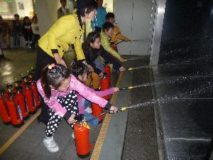 松戸市の防災センターでは、震度7の地震や風速30mの体験をしたり、119番通報の仕方、消化器を使った消火体験をしました。