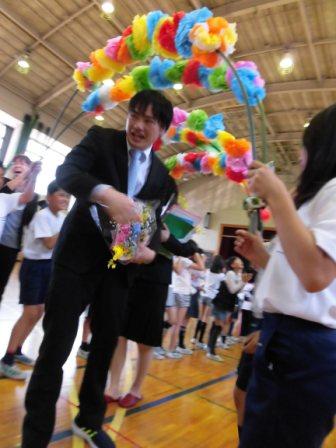 お世話になった先生方に再会しました。先生方との過ごした日々を思い出しながらの「離任式の歌」は涙、涙の歌でした。