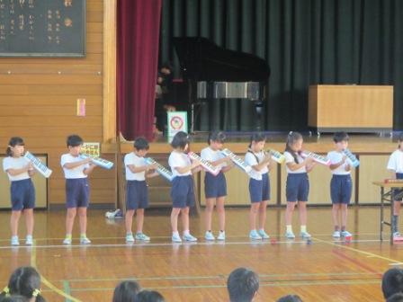 2年生歌声集会が行われました。「いるかはざんぶらこ」「かっこう」を元気に合奏・合唱しました。温かい合奏・合唱で体育館が温かい雰囲気になりました。