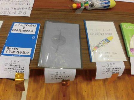 科学展に向けて、研究した成果を発表しました。個人研究でも立派なものが出来上がりました。「まほうびんを作ろう」を研究したグループの児童も夏休み中も研究し、まとめることができました。大変立派な作品になりました。