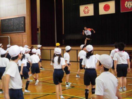 今日の業前活動は体育館でエアロビクスを行いました。リズムに合わせて体を動かしました。最初、慣れない運動でとまどっている児童もいましたが、だんだんと慣れてきて、とても楽しそうでした。汗もたっぷりです。来週の月曜日が楽しみですね。
