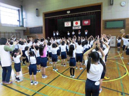 今年度初めての歌声集会が行われました。今回は運動会の歌を練習しました。