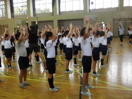 「フレー フレー 赤!」「フレー フレー 青!」「フレー フレー 黄色!」と体育館に声が響き渡っていました。本番は大空にみんなの声が響きます!楽しみです!