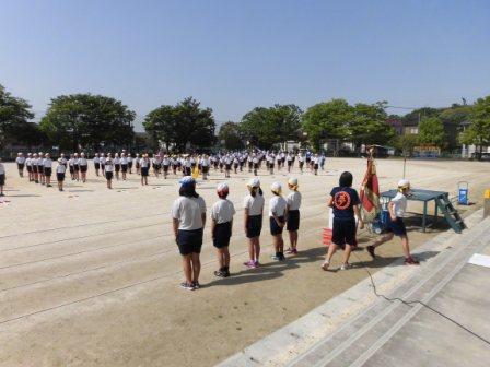 運動会全体練習が行われました。入場行進、開会式、大玉送りと盛りだくさんの内容でした。入場行進では、腕を大きく振って、堂々と行進することができました。暑い中でしたが、みんながんばっていました。