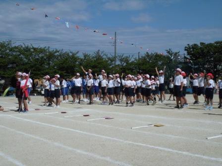 雨が心配されましたが、見事な五月晴れの中、第27回春季第運動会を行いました。今年のシンボルテーマは「たたかえ!後谷っ子!めざせNo.1!」でした。このテーマの通り、行進や競技などすべてに対してNo.1を目指していました。とても立派でした。最初から最後まで児童の笑顔が輝く1日になりました。