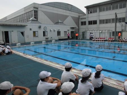 本日プール開きを行いました。石塚先生から水泳学習の心意気、注意点などのお話の後、各学年の水泳学習への決意を発表しました。どの学年も大きな声で、立派な発表でした。