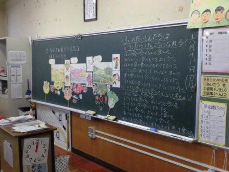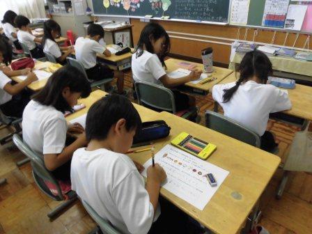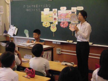 本日、栄養教諭原田先生が来校し、3年生で食育指導が行われました。めあては「何でも食べて元気な体をつくろう」というものでした。エネルギーのもとになる食品、体をつくるもとになる食品、体の調子を整える食品をそれぞれの国に例えて学習しました。