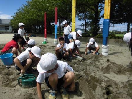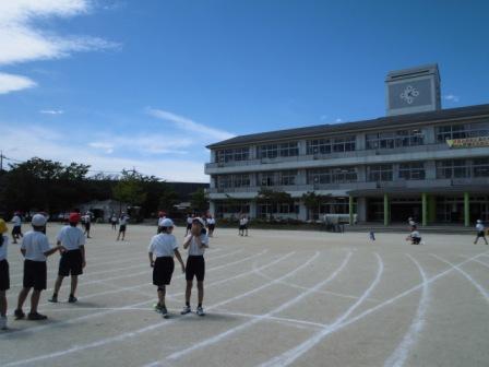なかよしタイムが行われました。青い大空の下で、クラスの友達といっぱい汗をかきながら外遊びをしました。