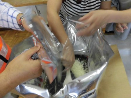 本日、実践的防災訓練を行いました。内容としては、震度5弱を想定した1次避難行動と2次避難行動、防災士藤井先生による防災学習、最後に保護者への児童の引き渡しを行いました。また、地域のの皆様の協力により、アルファ米で作ったわかめごはんを配付しました。「自分の命は自分で守る」学習を行うことができました。