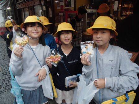 蔵造りの町並みと菓子屋横丁では埼玉スタジアムの近代感とは対照的な歴史ある建物を見ました。子供たちは自分の住んでいるお家とは違うことに興味をもっていました。菓子屋横丁ではグループ行動をしました。班長を中心にみんなで協力してお買い物をすることができました。