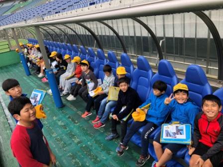 埼玉スタジアムでは普段は見ることができない選手達が使用するロッカールーム、トレーニングルームを見学することができ、大興奮でした!ピッチ入ったりベンチに座ったりすることができて貴重な体験ができました。