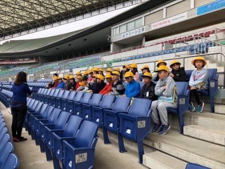 本日、4年生は社会科見学に行ってきました。埼玉スタジアム2002と川越の蔵造り町並みと菓子屋横町を見学しました。出発式では、司会のお話や校長先生の話を目と耳と心で聞くことができていました。