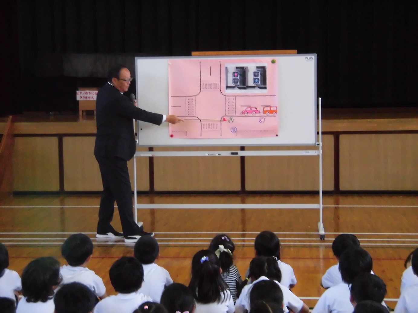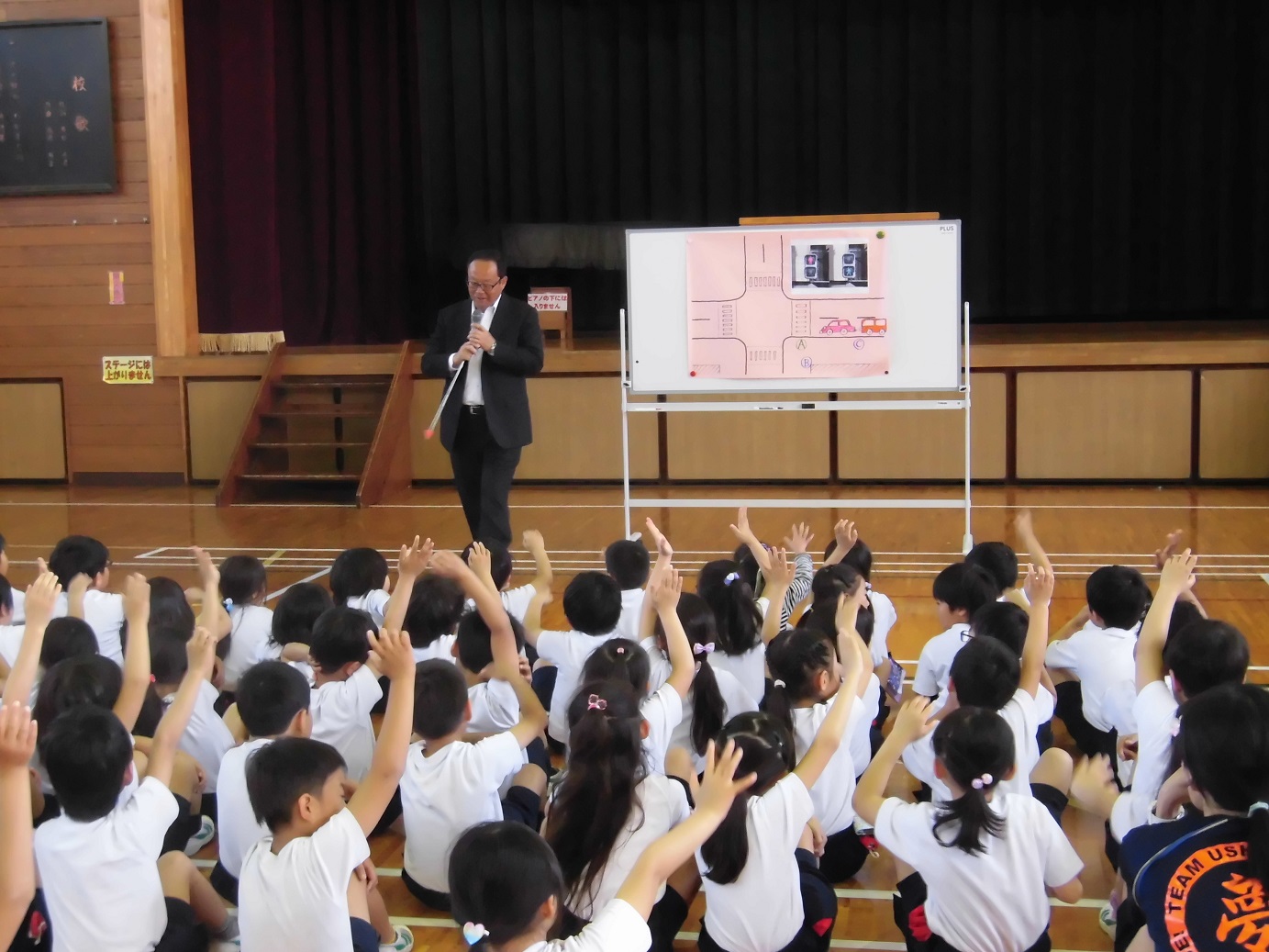本日の朝はお話朝会でした。校長先生から、交通ルールを守ることについてお話がありました。次に、齋藤先生から今月の生活目標についてお話がありました。5月の生活目標は「けじめある生活をしよう」です。交通事故に気を付けて、けじめのある生活をしましょう。