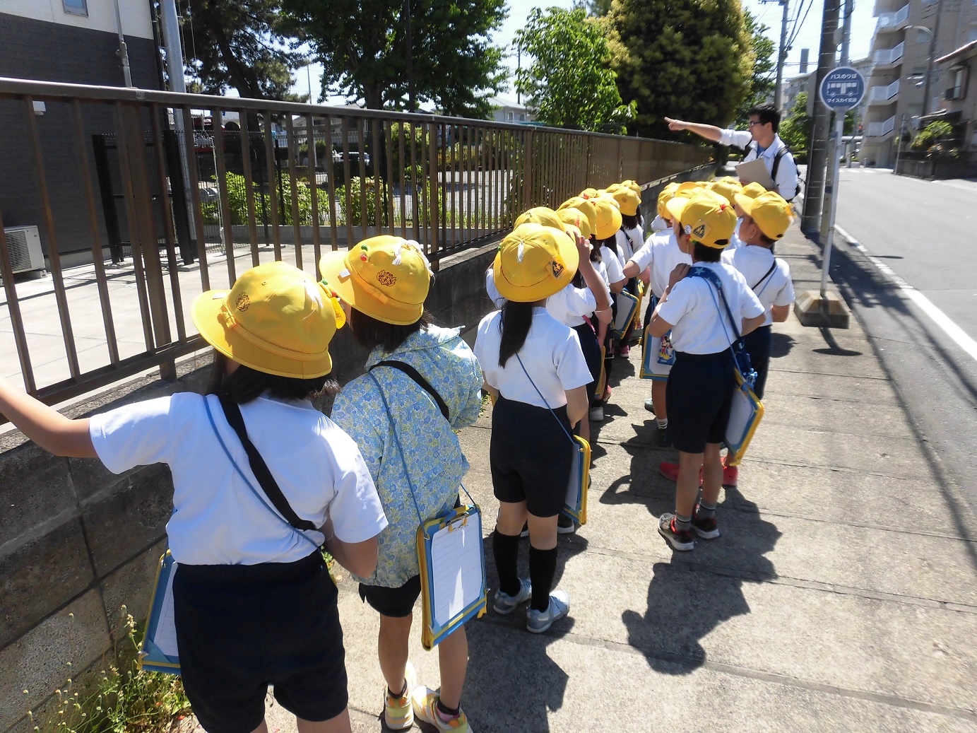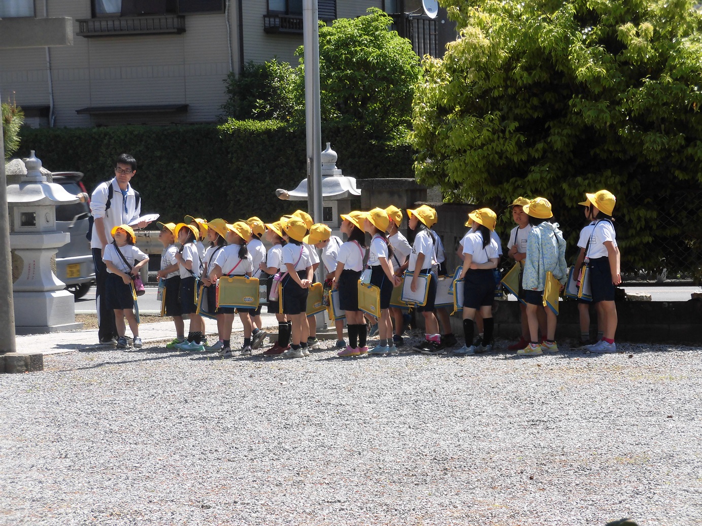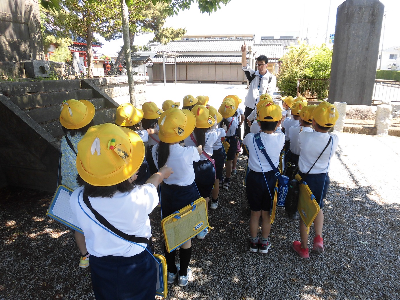 2時間目に2年生がまち探検を行いました。学校を離れ、丹後神社に行きました。丹後神社までの途中や丹後神社で見つけたものを児童は記録していました。全員、無事帰ってくることができました。