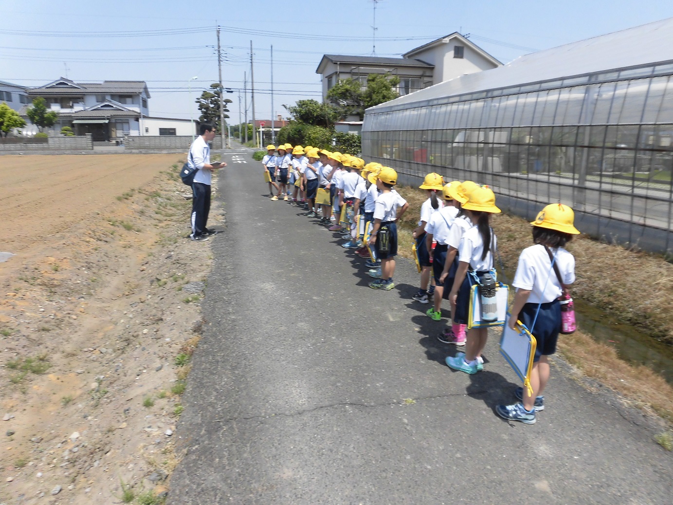 本日のまち探検は、近所にあるコンビニエンスストア周辺に行きました。田んぼや畑がたくさんありました。畑には何が植えてあるかを確認していました。