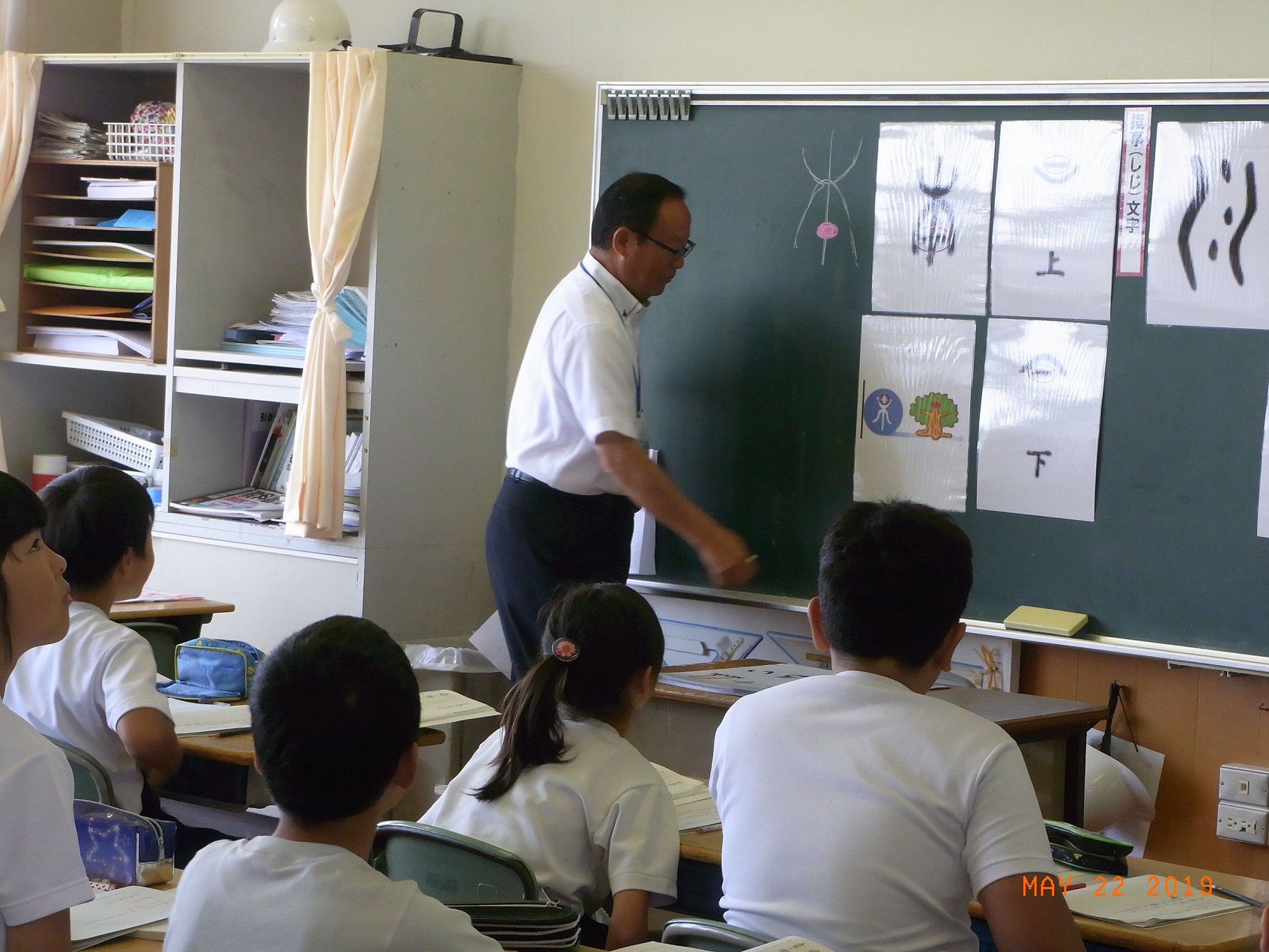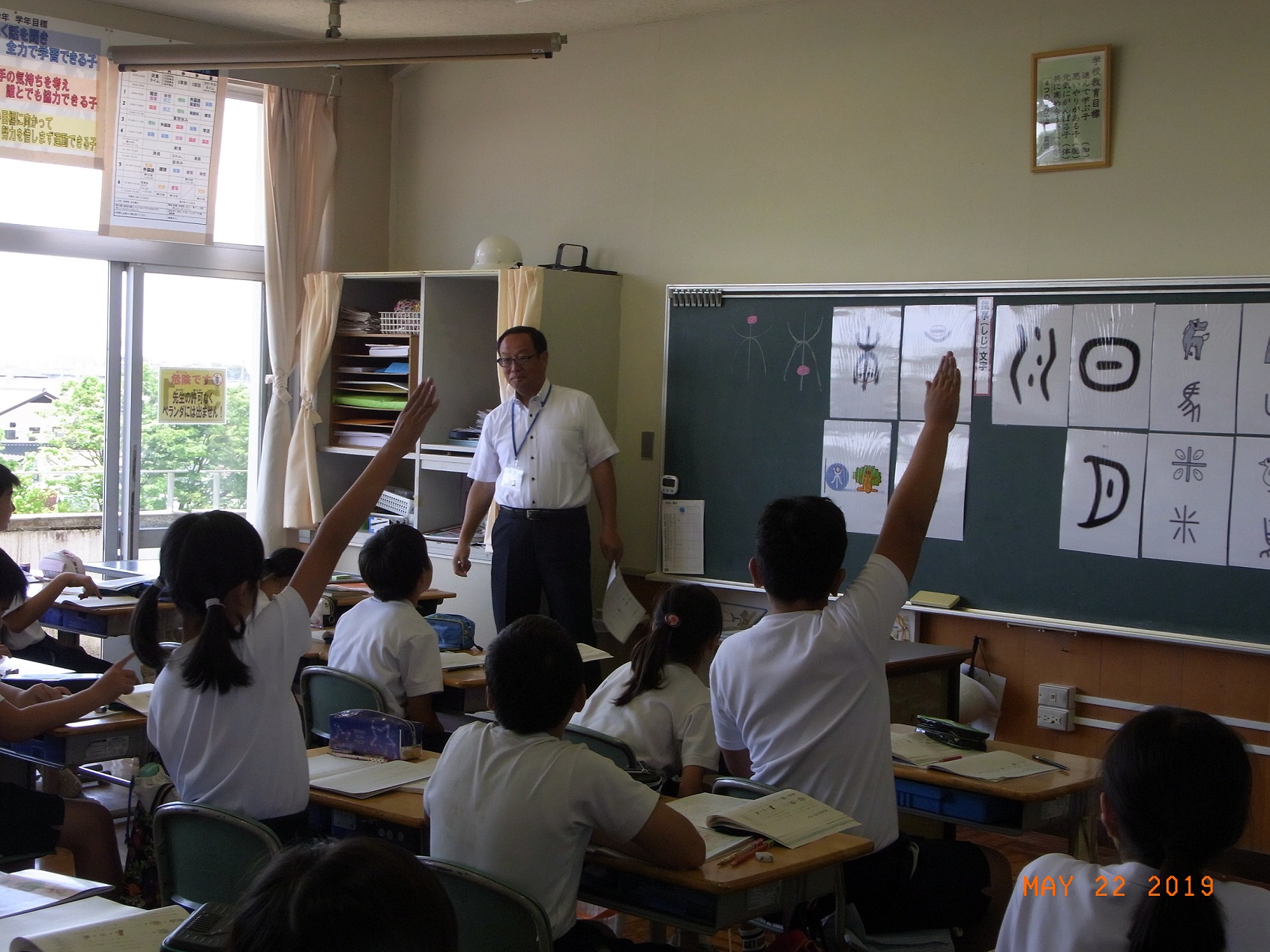 漢字の成り立ちやつくりについて、いつもとは違った視点からのお話に、子どもたちも一生懸命授業を受けていました。