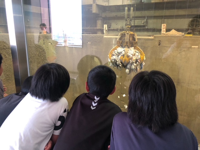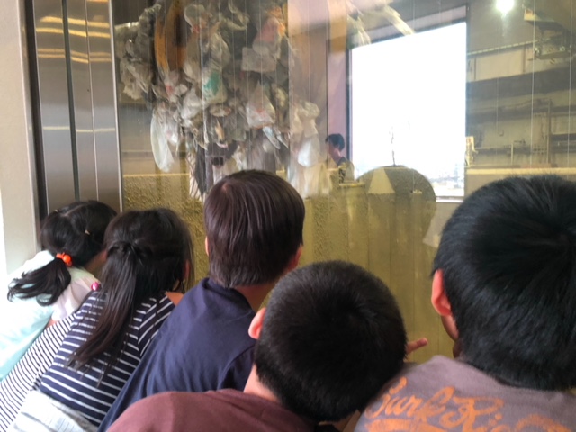 実際に目の前で行われるゴミ処理を、ガラス越しにまじまじと見つめたり…