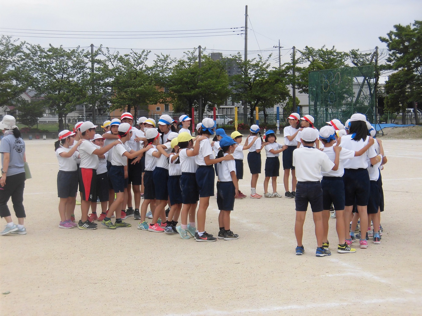 なかよしタイムに、全校児童で親子フォークダンスの練習をしました。後谷小児童は、全員が仲良しです。当日は保護者の皆様にも加わっていただきます。