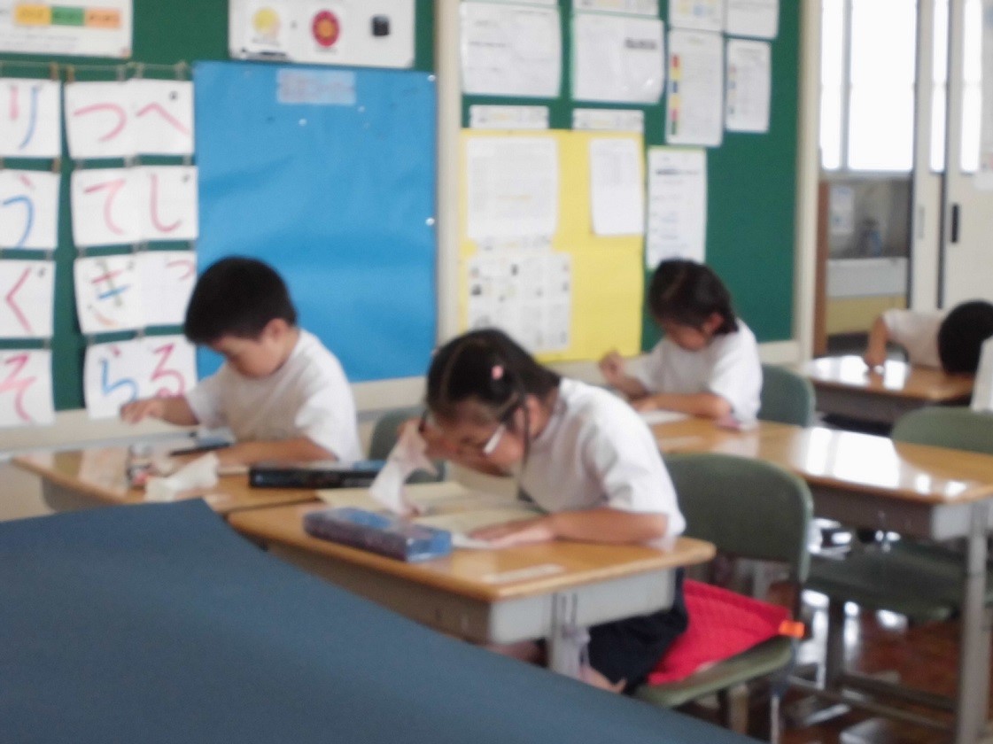 今日は、校内硬筆展です。 各学年、練習の成果を発揮できるように集中して机に向かっています。 1年生にとっては、はじめての硬筆展。緊張の面持ちですが、出来栄えはどうでしょう? 真剣に、ていねいに書けたでしょうか。