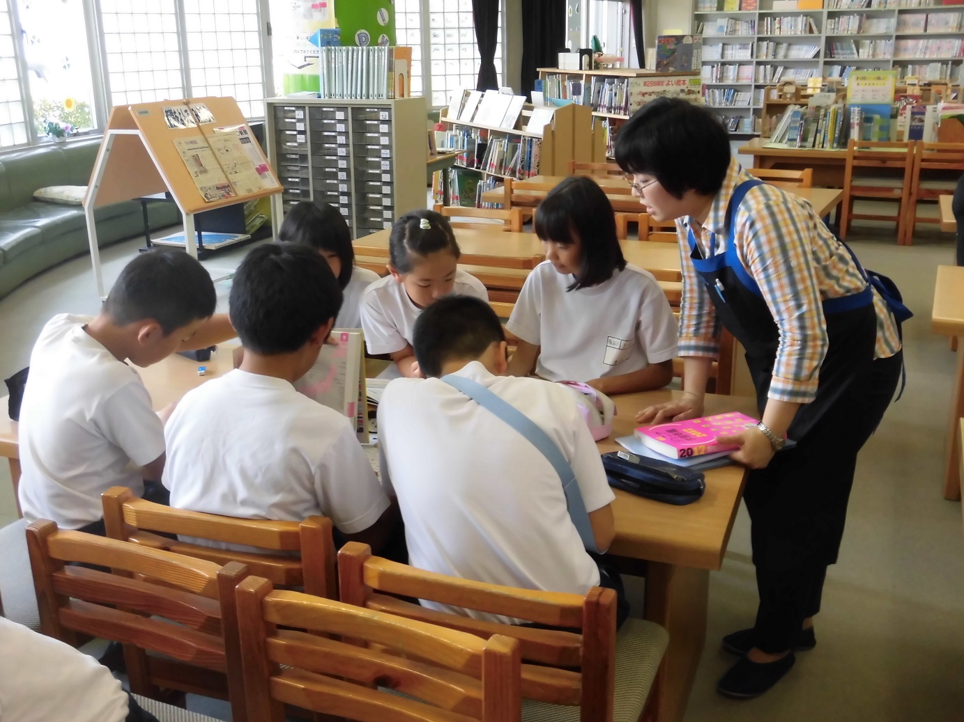 5年生は、図書室で調べ方の学習をすすめていました。学校司書さんからアドバイスをもらいながら、全員真剣に取り組んでいます。