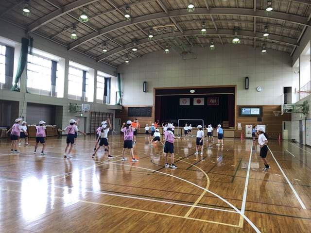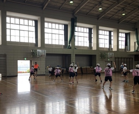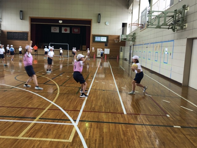 平日の放課後、高学年児童がハンドボールの練習に励んでいます。