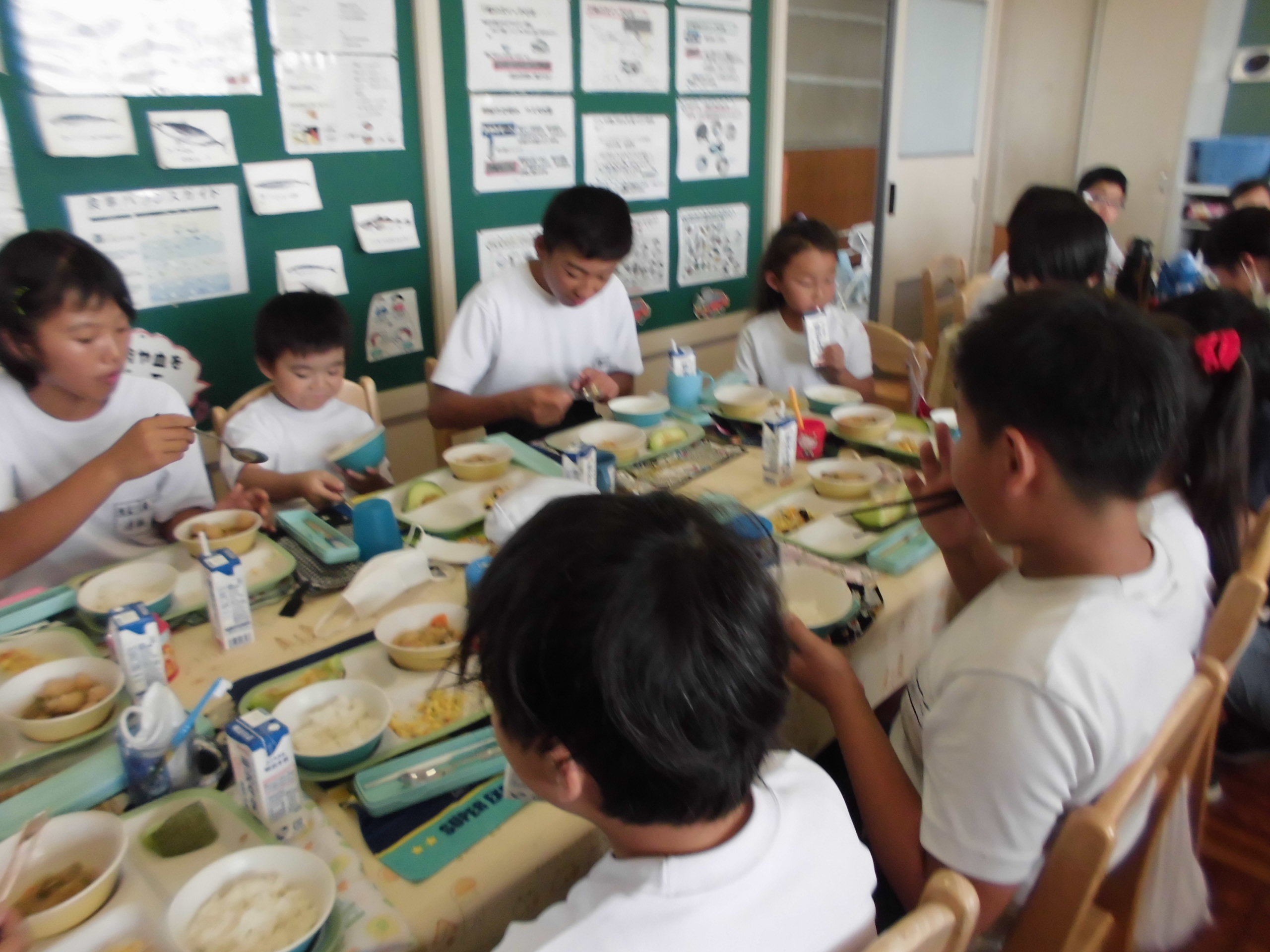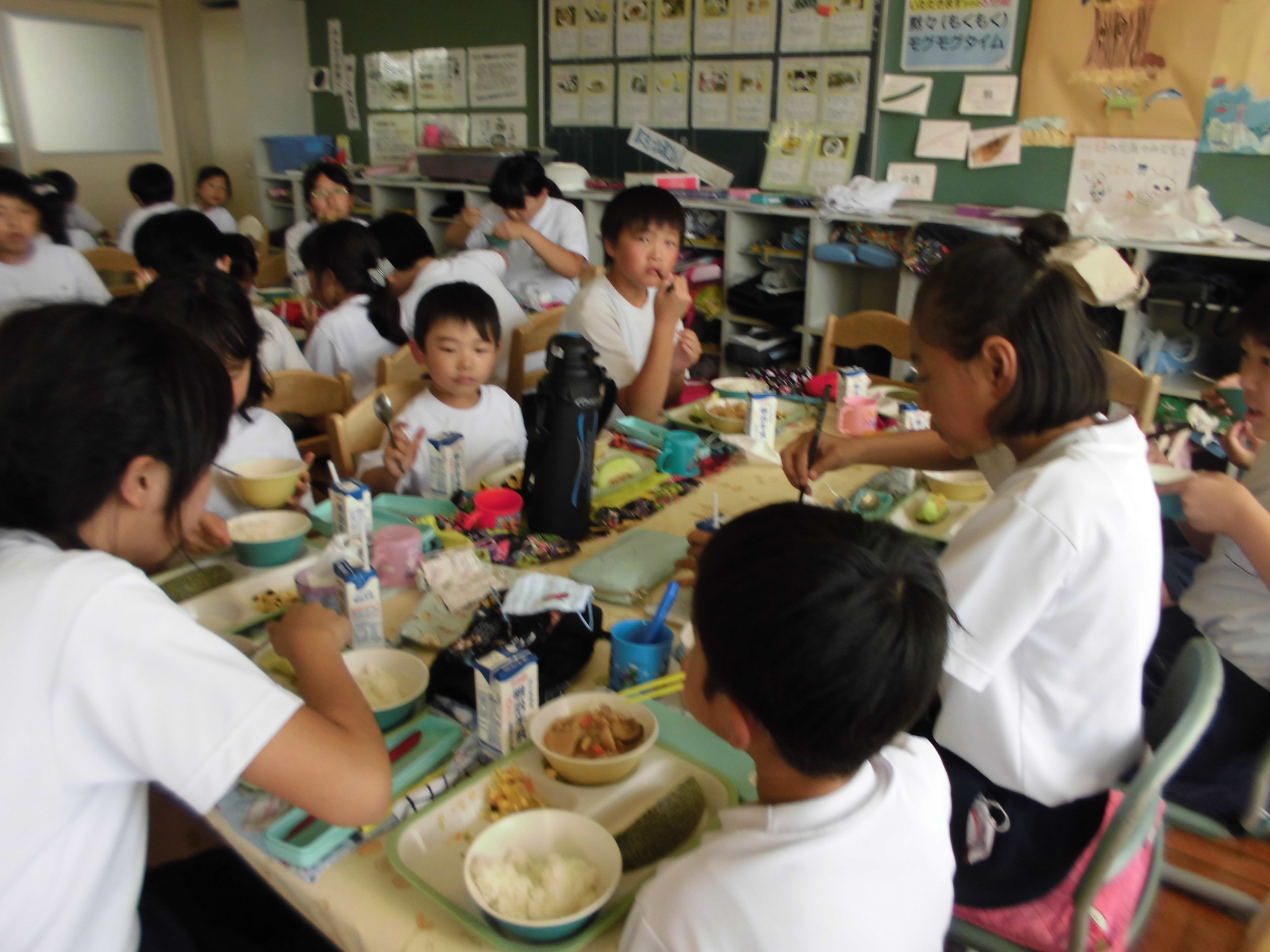 1年生と6年生で、体力テストが終わった後にランチルームでご飯をたべました。お兄さん、お姉さんのしっかり給食を食べる姿が素晴らしかったです。