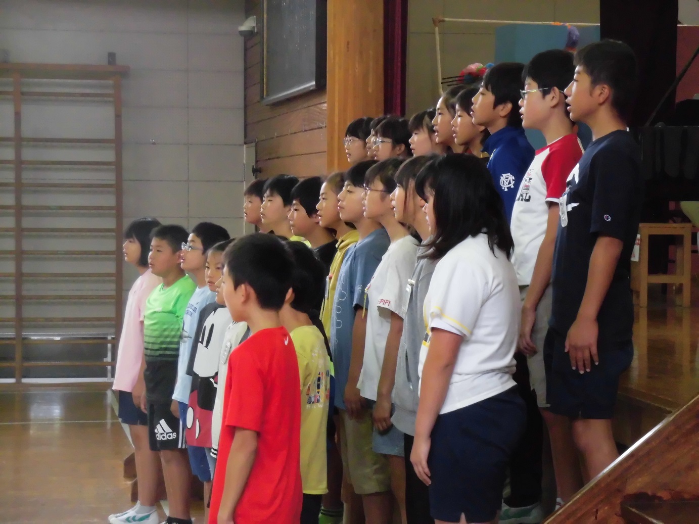 本日の朝は歌声集会でした。6年生のきれいな歌声が体育館に響き渡りました。各学年の児童の感想は、「とてもきれいでした」と絶賛されていました。6年生の皆さん、素晴らしい歌声をありがとう。