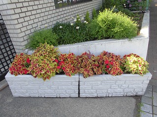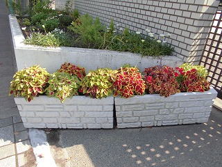 皆さんが毎日登下校する正門入口に植えたコリウスの花が咲きました。