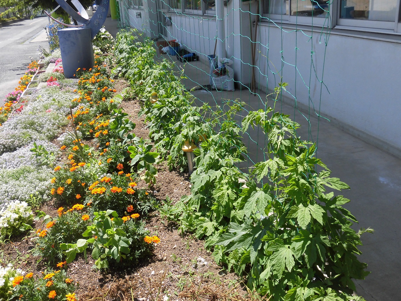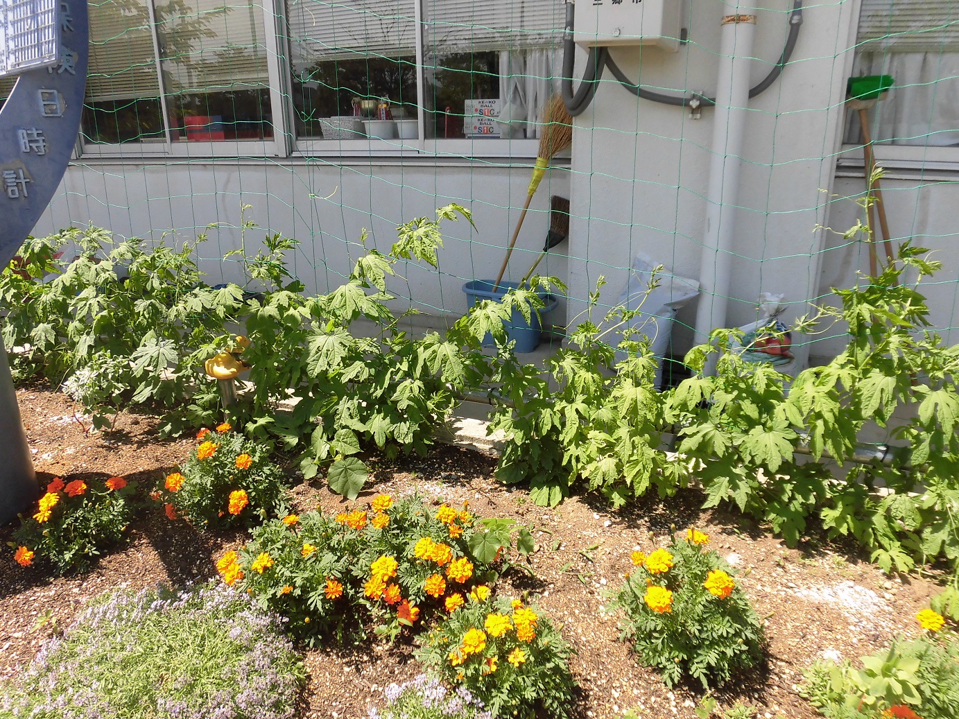 職員室前の花壇のゴーヤが大きくなっています。今後が楽しみです。