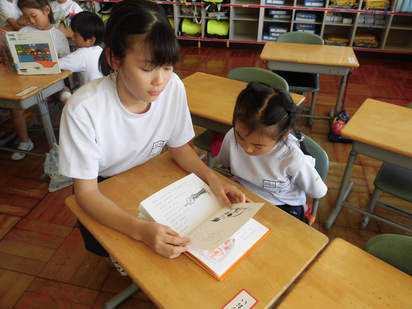 本日のお昼は、なかよし読書です。6年生は1年生に、絵本を読んであげていました。1年生はとても楽しそうでした。6年生の皆さん、ありがとう。