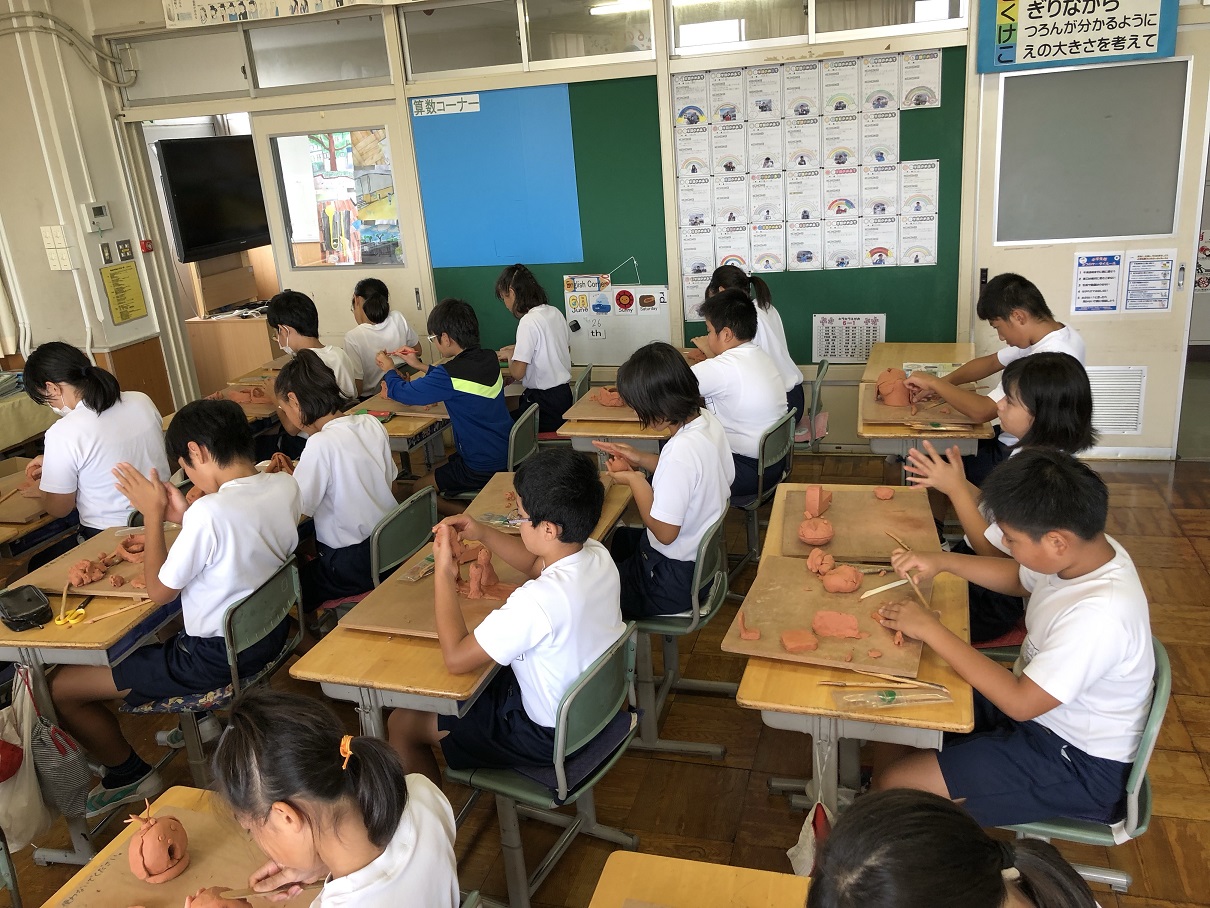 6年生が真剣に取り組んでいるのは・・・、粘土づくりです。全員、真剣に取り組んでいました。