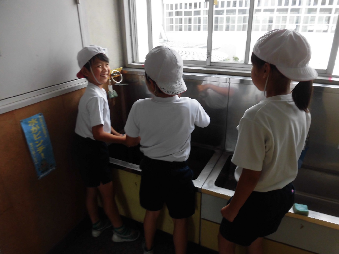 本日が1学期最後の縦割り班清掃です。みんな仲良く、力を合わせて掃除しています。来週からは、クラス清掃です。