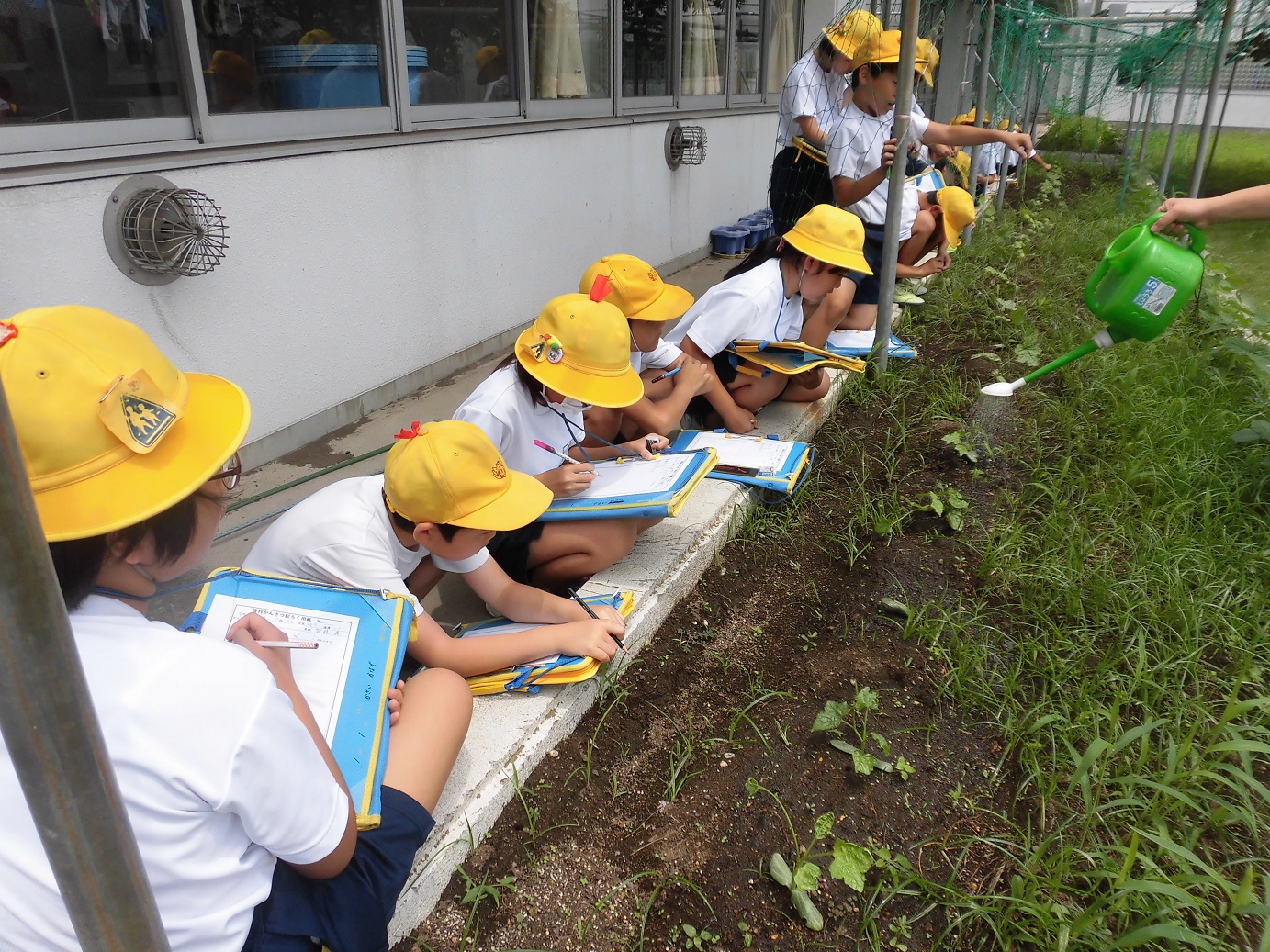 4年生がヘチマを観察し、記録しています。うまく描けたかな?