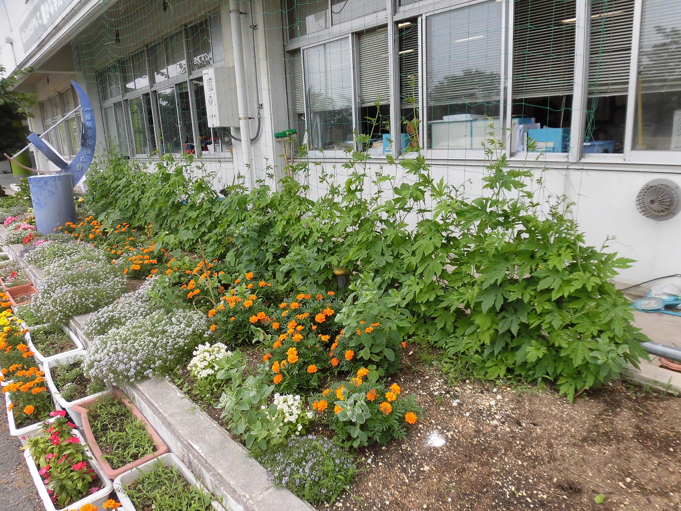職員室前のゴーヤが、さらに成長しています。大きくなれ!