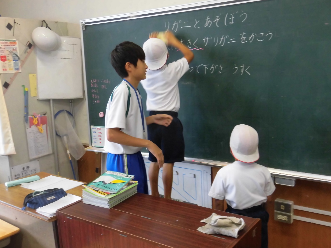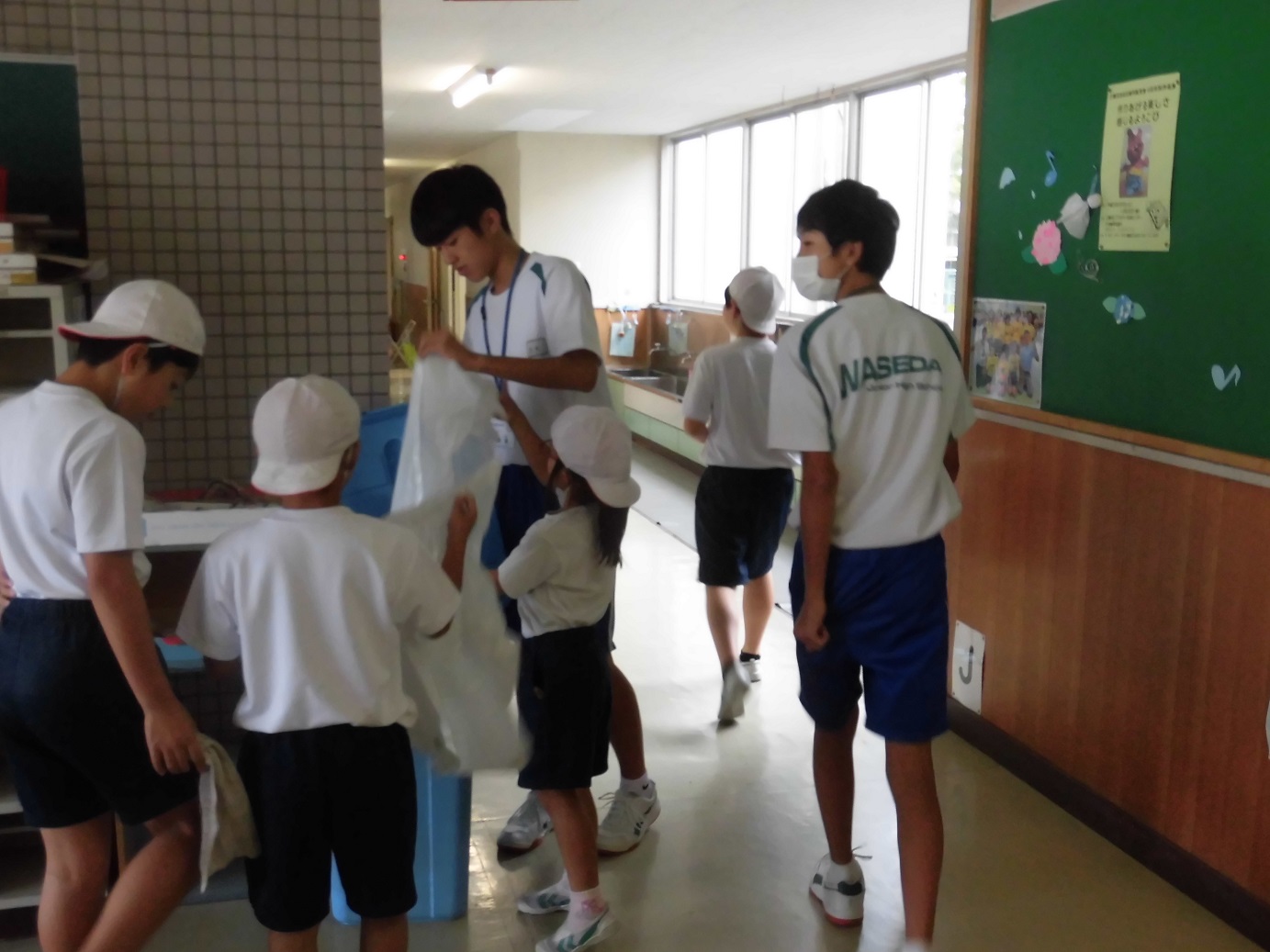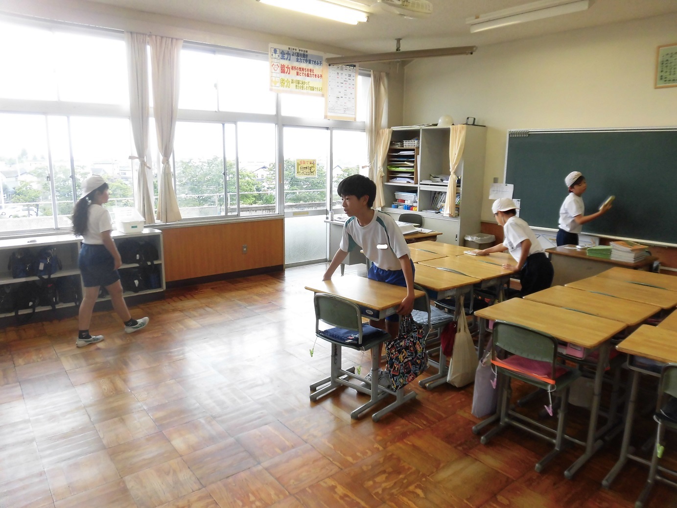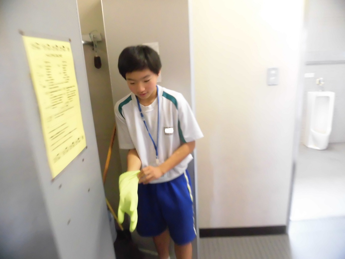 給食も終わり、今は掃除の時間です。協力して掃除しています。中学生もまじめに掃除しています。