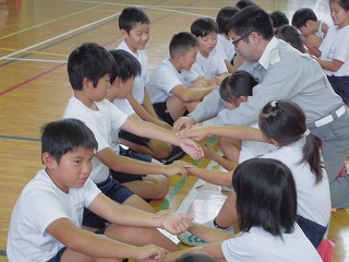 5年生を対象に、三郷市消防本部の皆様にお越しいただき、救命救急講習を開催しました。心疾患が原因で突然亡くなる方は、年間6万人、学校でも年間50人が亡くなっているそうです。高学年は救命救急の戦力になり、市民の救助に役立ちましょう。