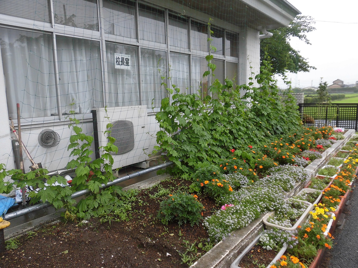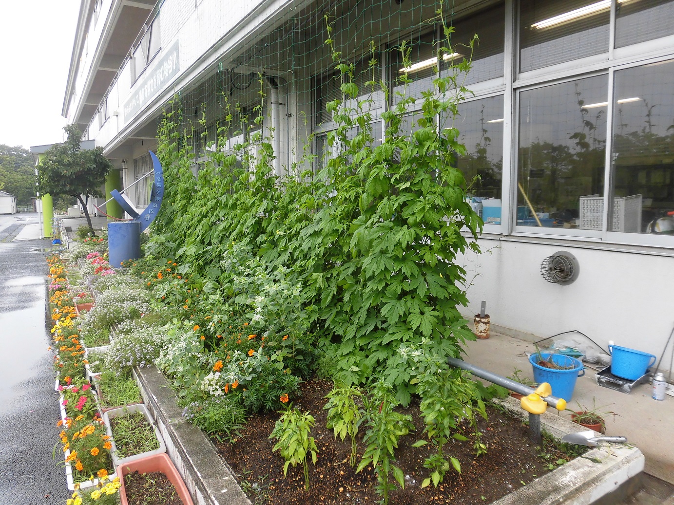 ゴーヤは大きく育っています。もう少しで1階の天井と同じくらいの高さになります。
