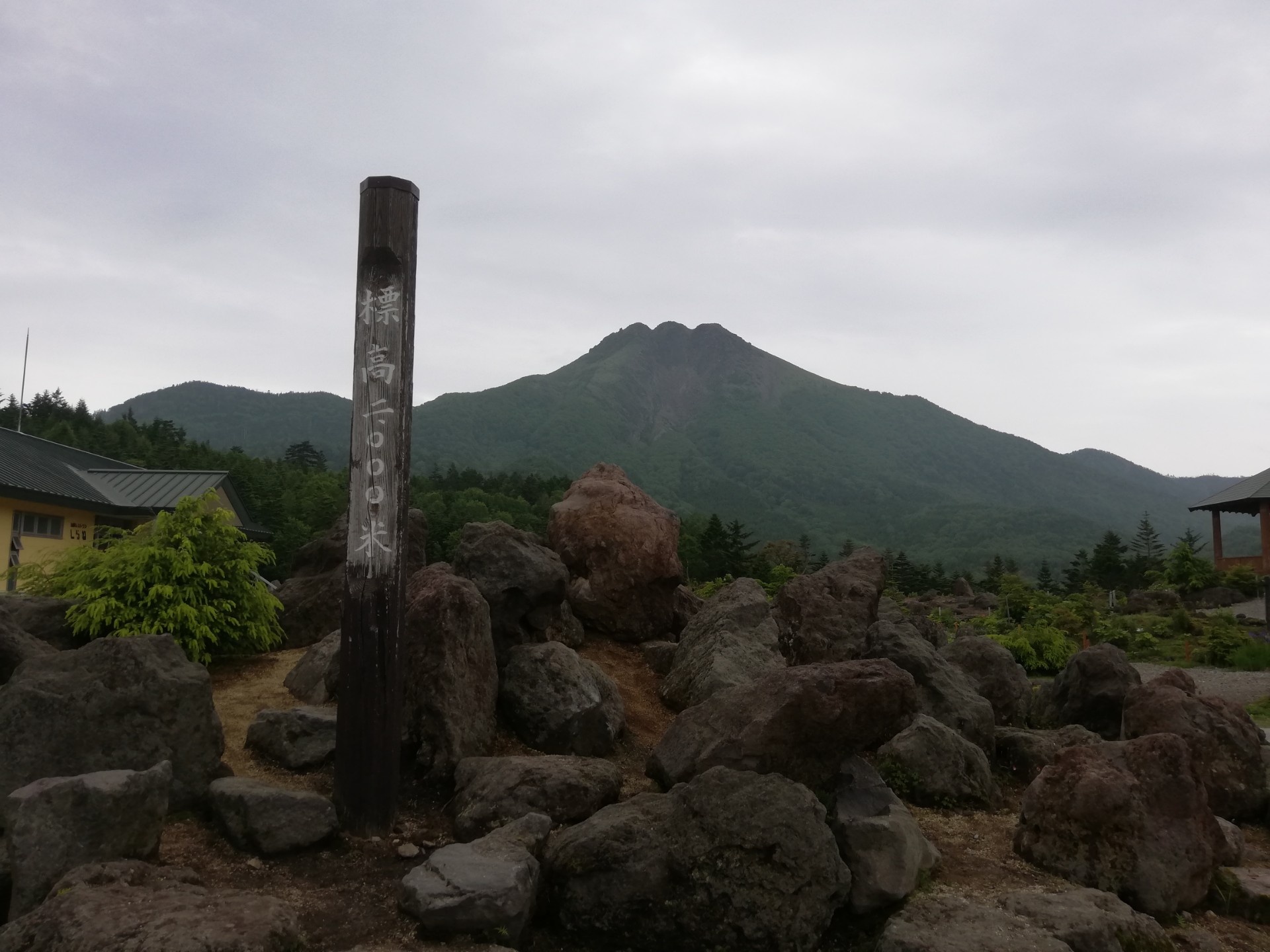 ロープウェイを降りたところからの風景です。あいにくの空模様ですが、これからハイキングです。頑張れ6年生!