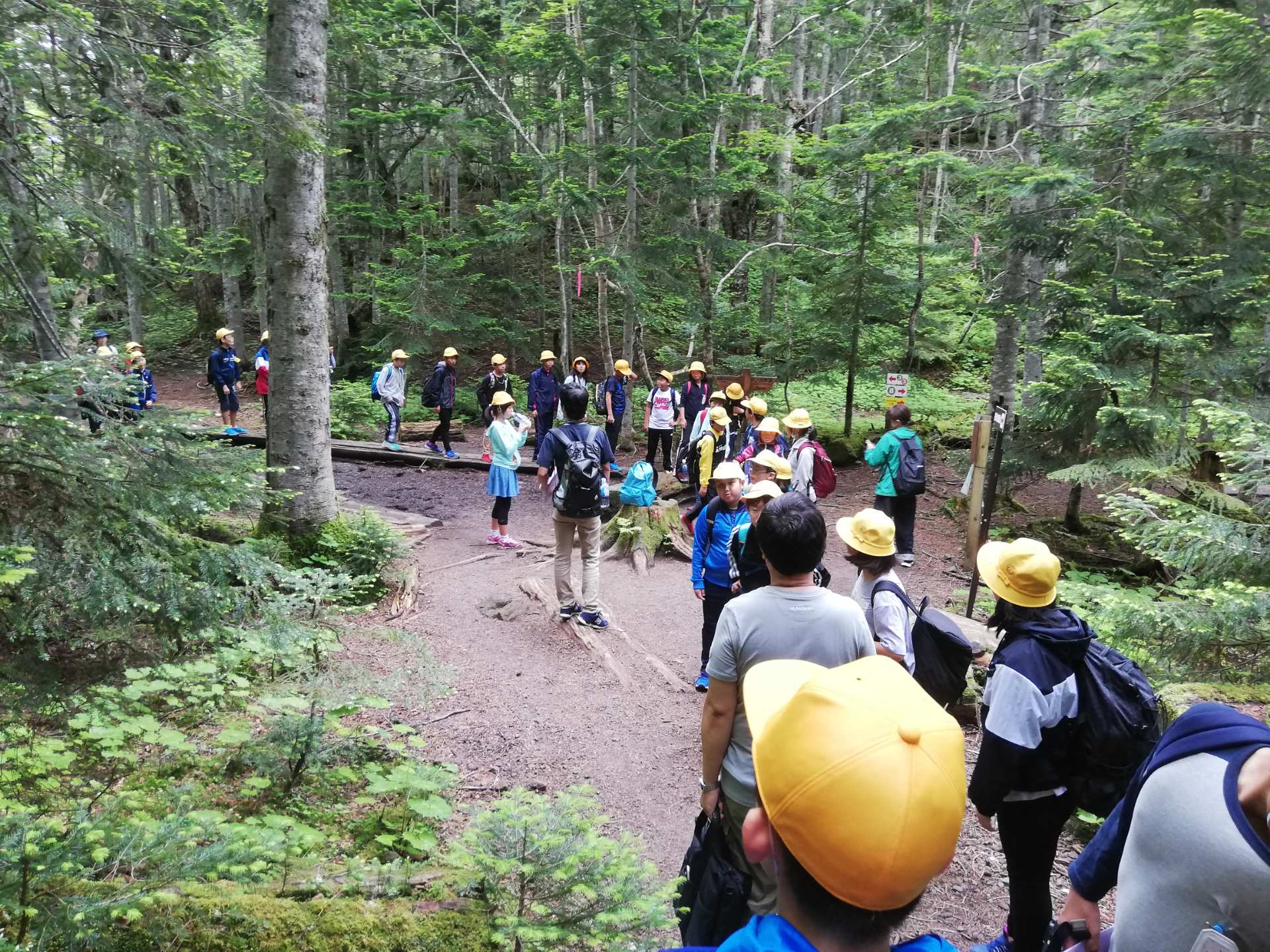 ハイキングの様子をお届けします。全員、一生懸命に歩いています。