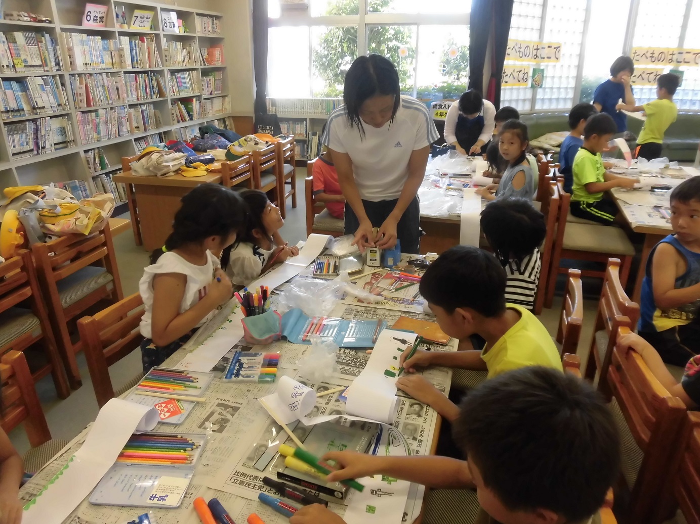 本日、図書館では工作会が行われました。掲載した写真は1・2・3年生の様子です。みんな真剣に、楽しんで作っていました。