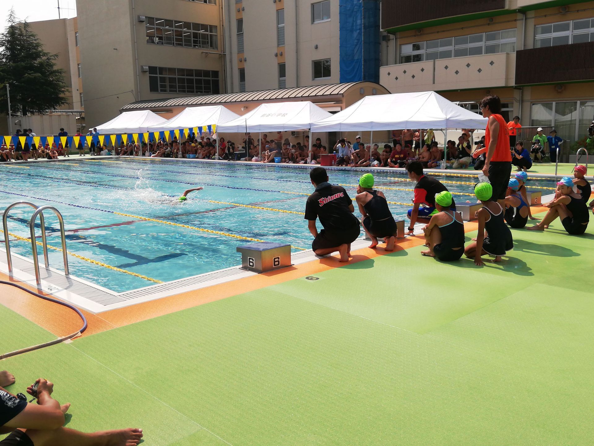 水泳大会が始まりました。男子リレー、女子リレーが終わりました。男子はベストタイムを4秒縮め、女子は6秒縮めました。男子リレーはB決勝に進みます。