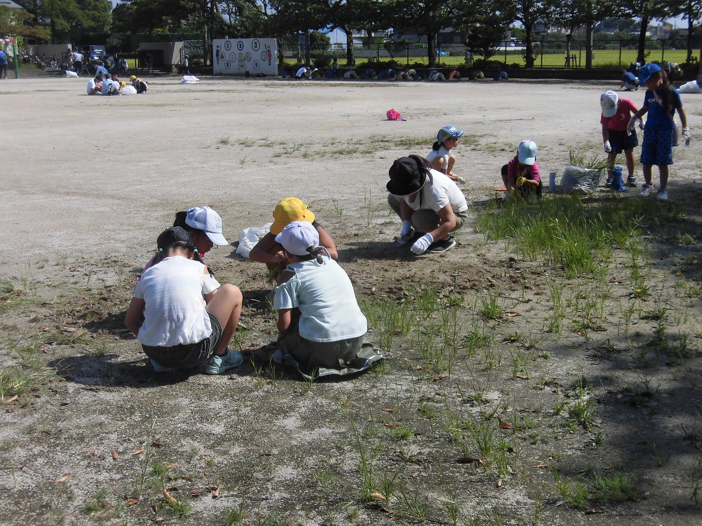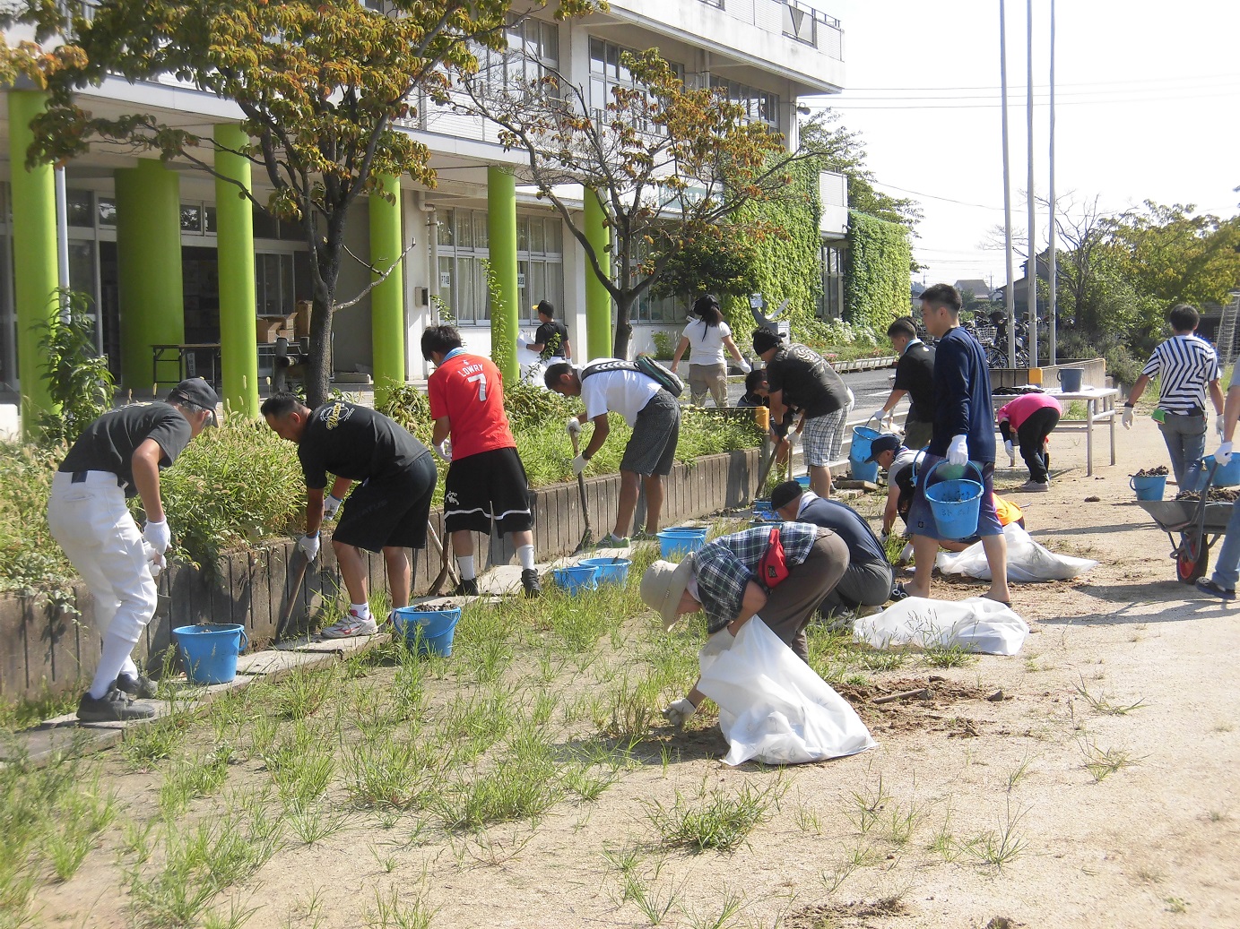本日、8時30分より学校をきれいにし隊を実施しました。校庭の草むしりや側溝の清掃、校舎のトイレ清掃をしていただきました。ご参加くださった約150名の皆様、本当にありがとうございました。おかげできれいな環境で第2学期を迎えることができます。