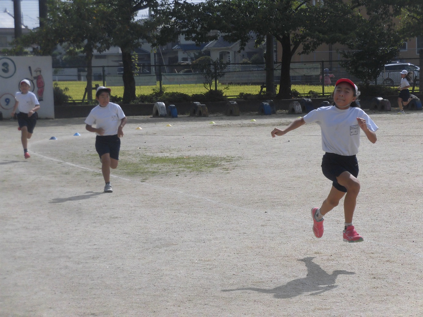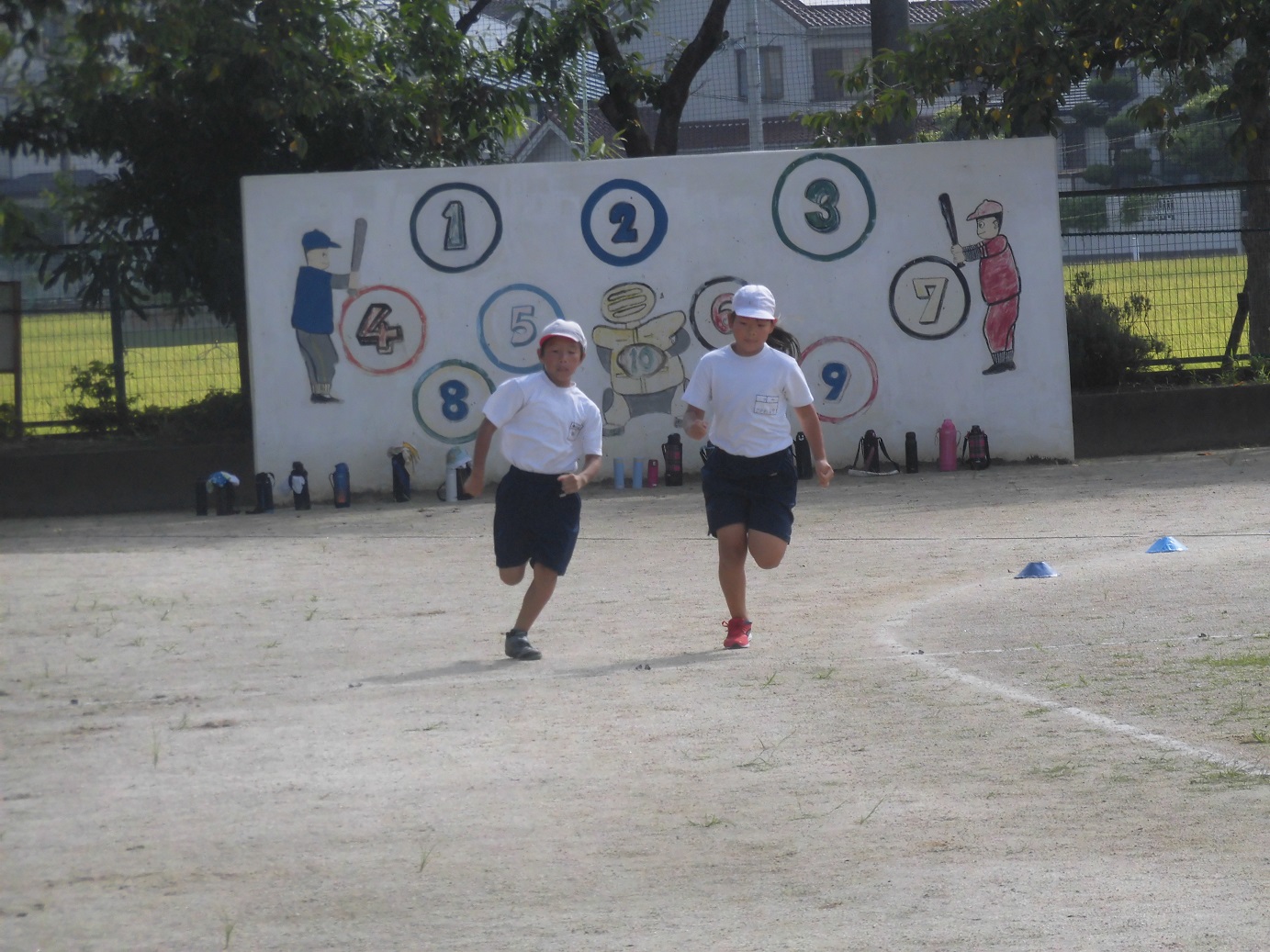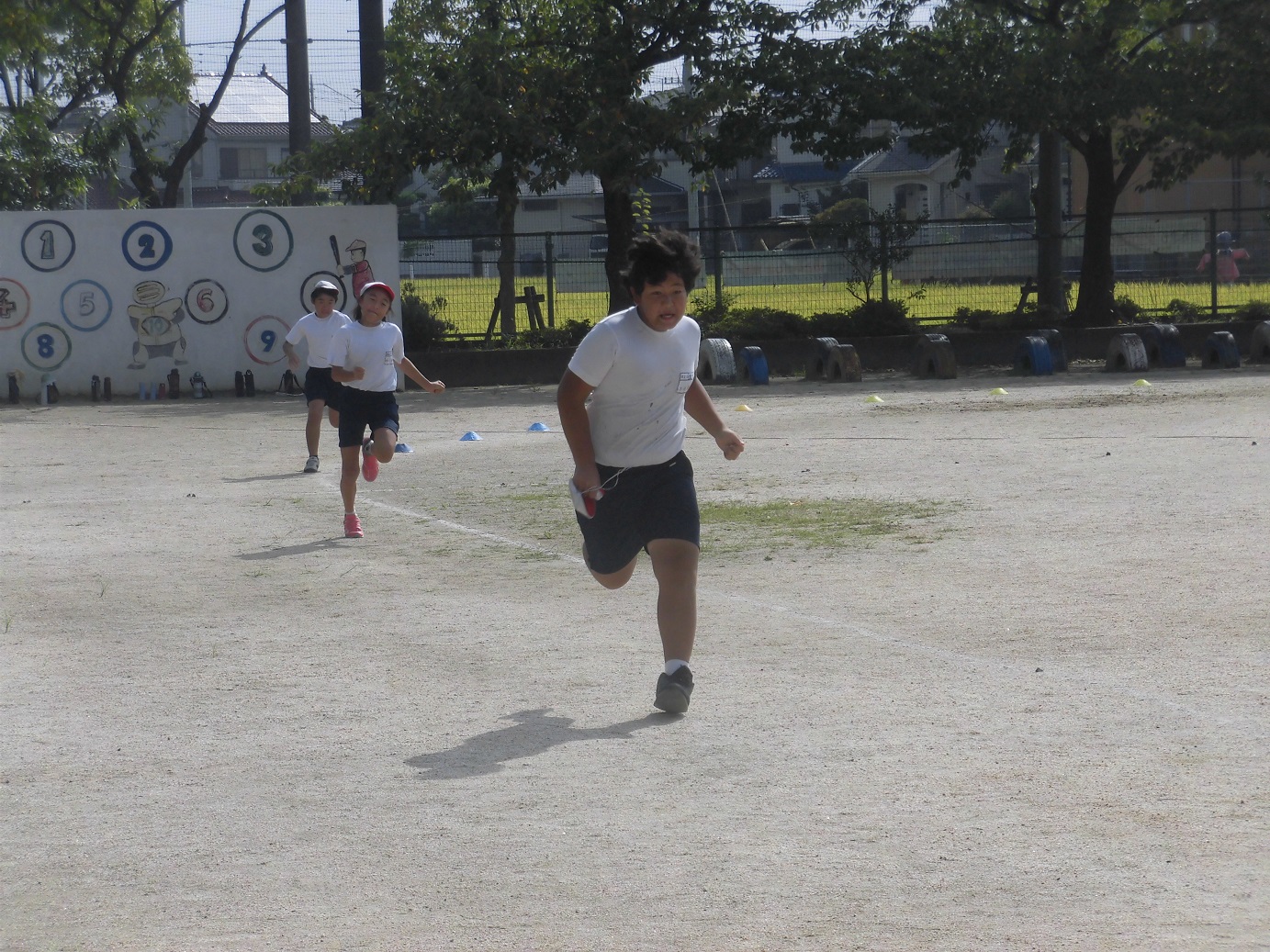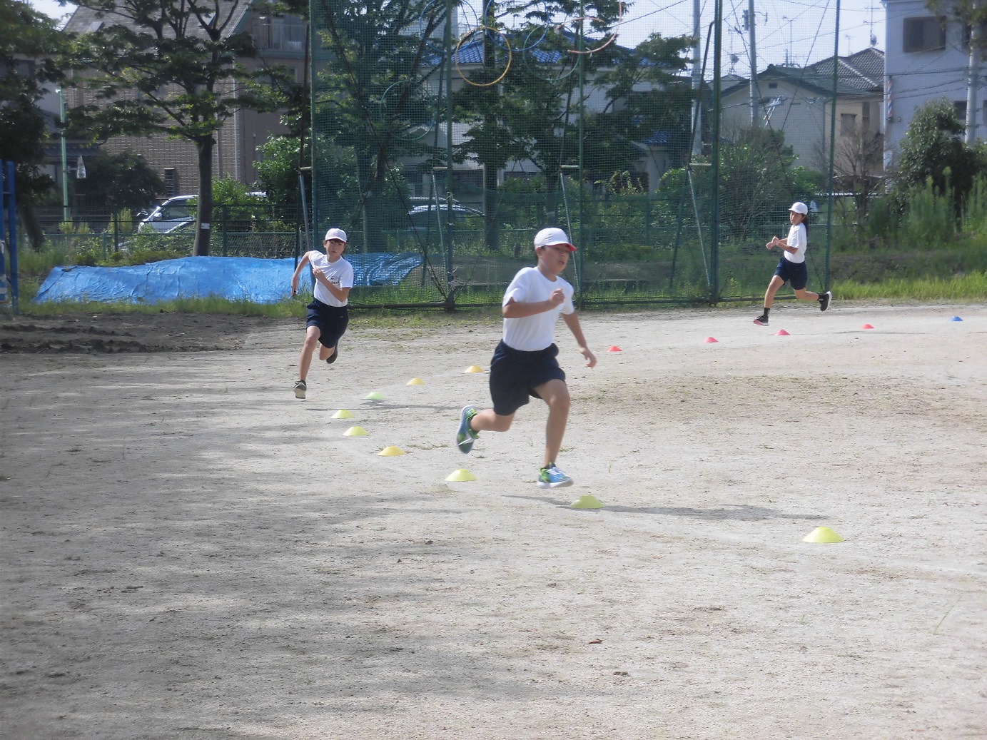 本日の1時間目に、456年生は100M走のタイムを計りました。暑い中でしたが、全員、一生懸命走っていました。自分のタイムを更新できるよう頑張っていきましょう。