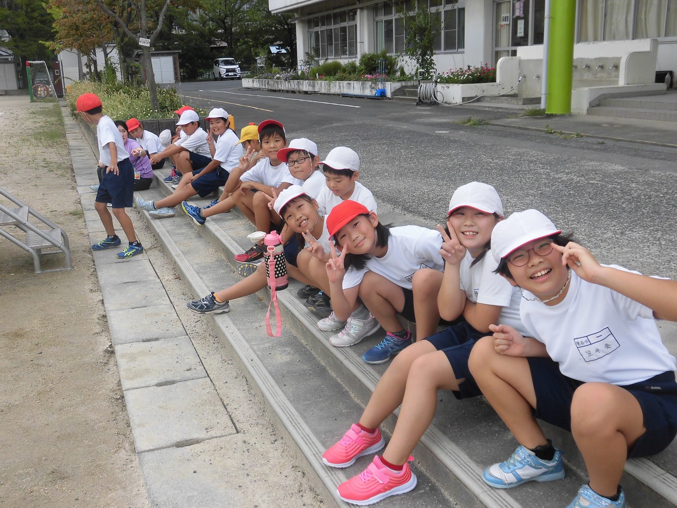 放課後の陸上練習が始まる前の4年生の様子です。これから始まる練習に備え、全員笑顔です。練習がんばれ!