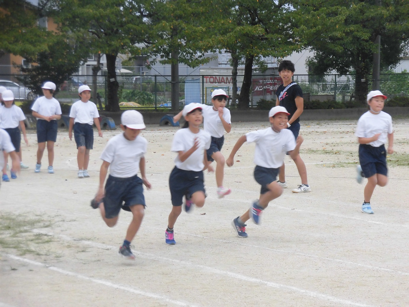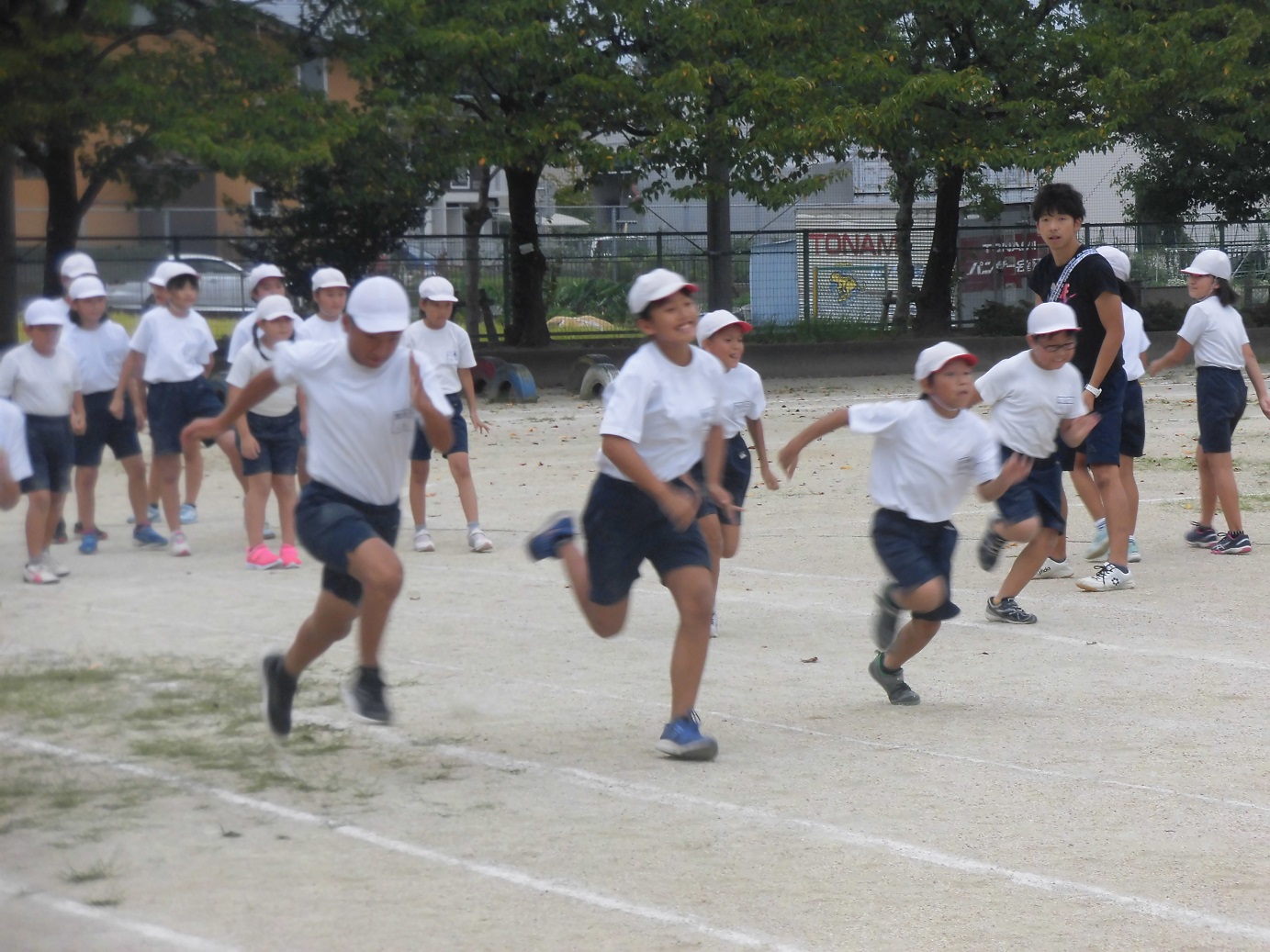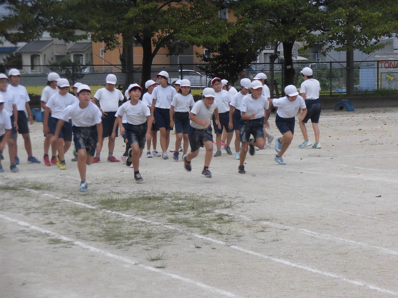 放課後の陸上練習2日目です。全員、真剣に走っています。自分に負けるな!