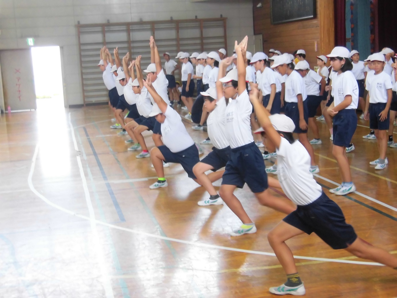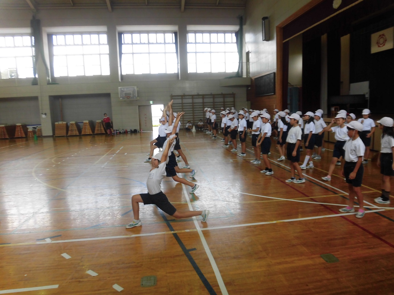 本日の昼休みの練習は暑さを避けるため体育館で行いました。全員真剣に取り組めていました。今日は、台風のため2時間遅れのスタートでしたが、みんな元気に頑張っています。