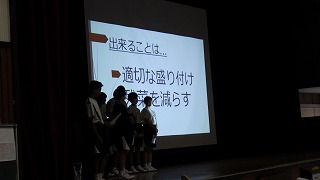 生徒集会が行われ、給食委員会の発表と南中祭のスローガンの発表がありました。